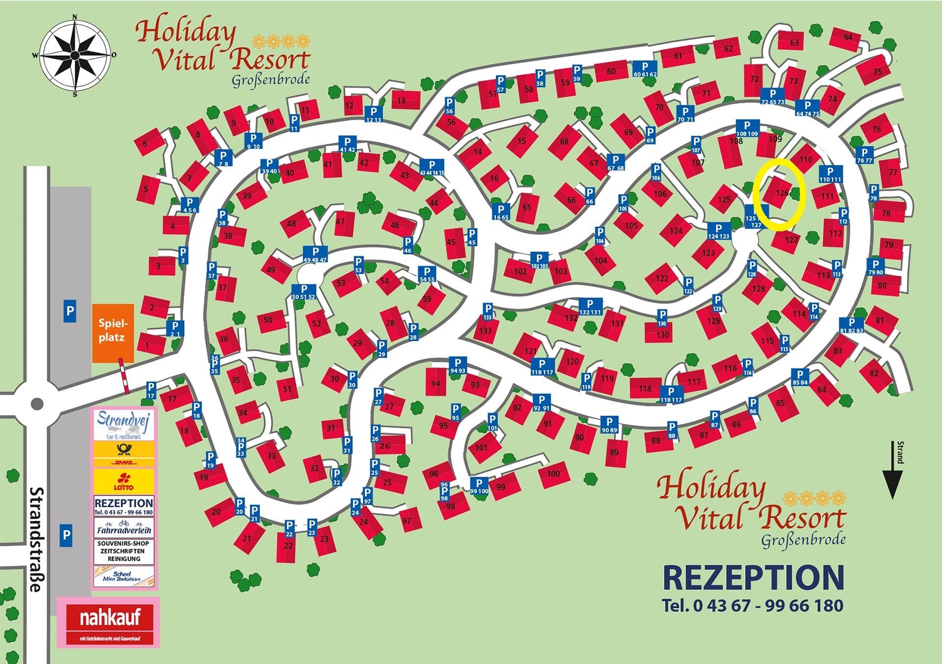 Die Ferienanlage besteht aus zwei etwas getrennt voneinander liegenden Feriendörfern, dem Resort 1 und dem Resort 2. Unser Haus steht im hinteren Teil von Resort 2, das sich direkt an das Rezeptionsgebäude anschließt.