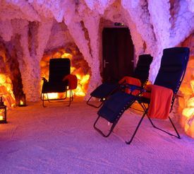 Salzinsel Fehmarn - Angenehme Musik, das beruhigende Farbenspiel der Salzkristalle sowie ein Sole-Bachlauf, der sich langsam durch die Grotte schlängelt und über ein Gradierwerk mit Reisigbündeln leise herunter plätschert, bietet den Rahmen für eine entspannende Ruhe. (ca. 17 km)